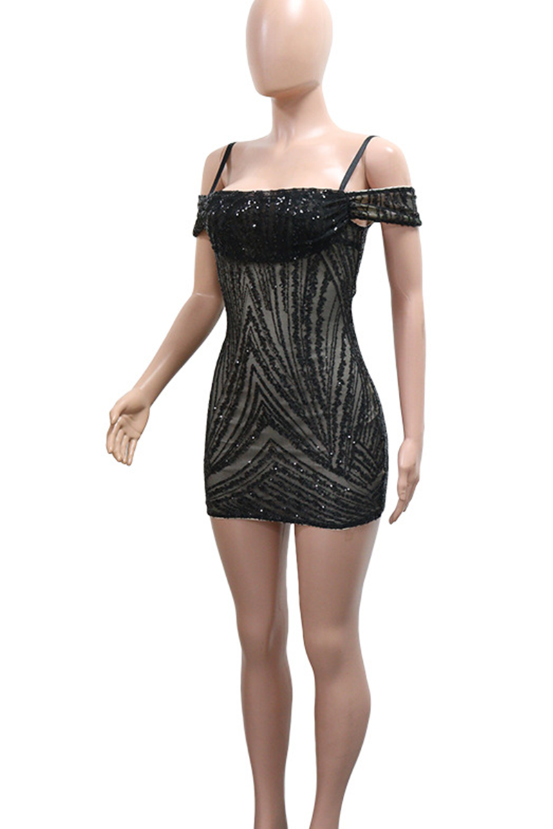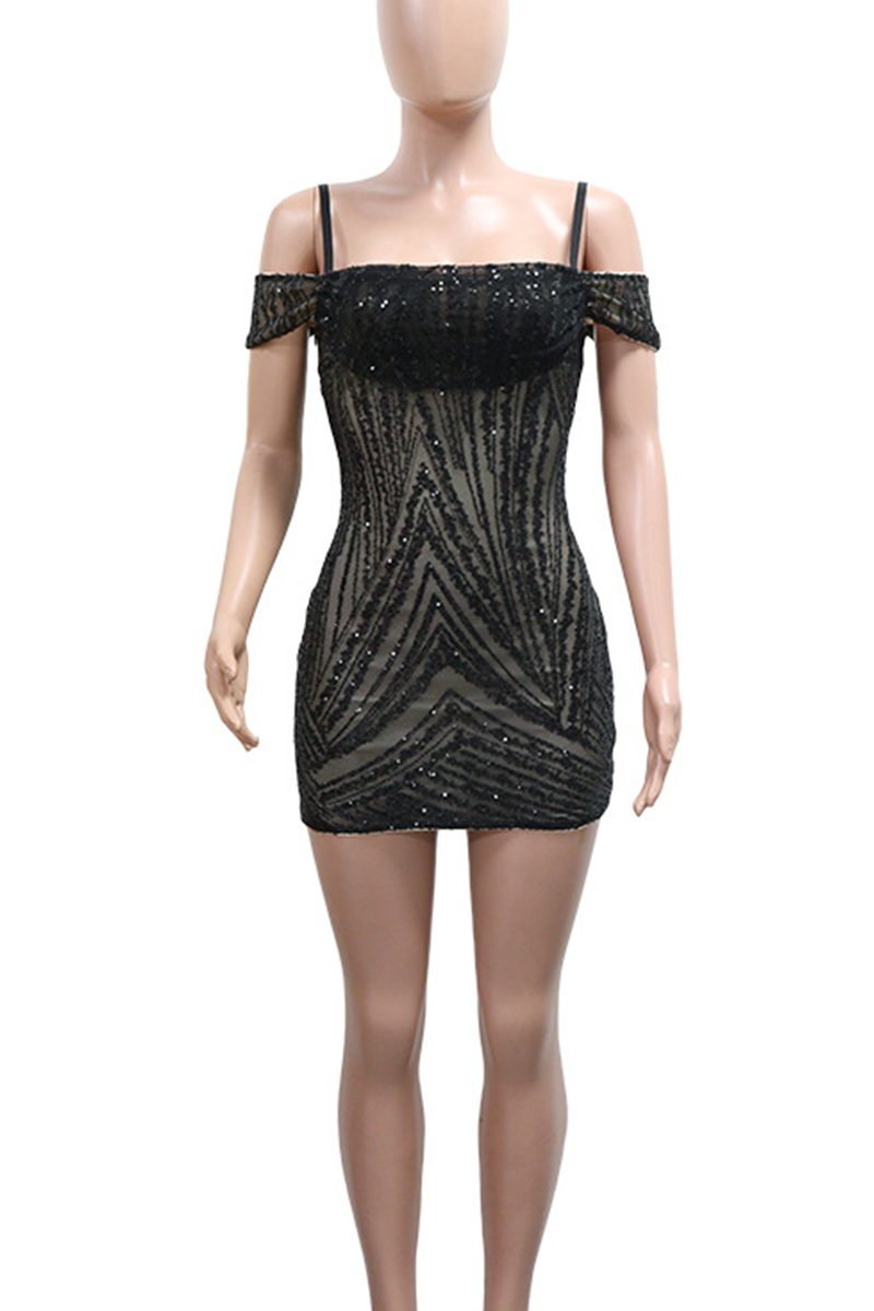 Black Sexy Solid Color Backless Spaghetti Strap Wrapped Skirt Dresses