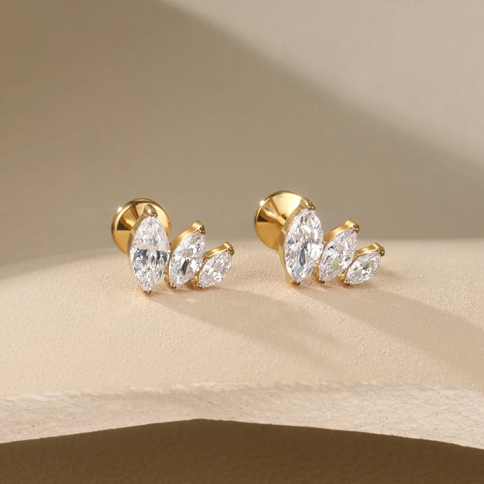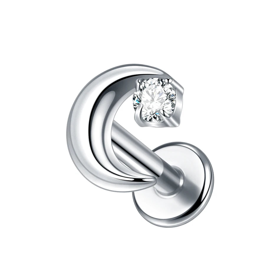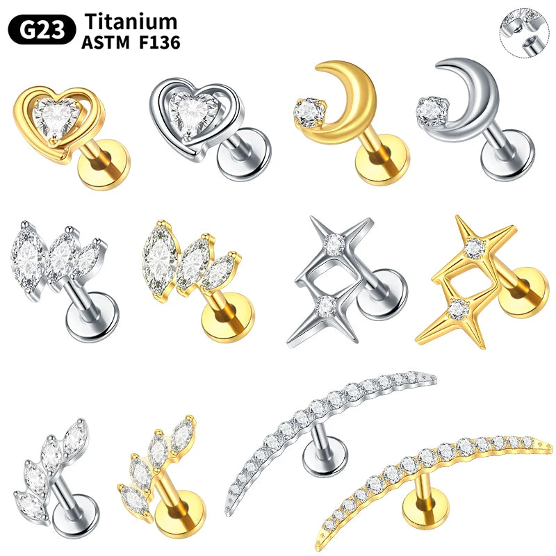 G23 Titanium Ear Cartilage Piercing Moon Heart Crystal Flat Back Ear Studs Tragus Helix Earrings Sexy Jewelry for Women