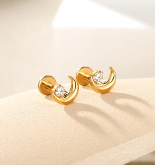 G23 Titanium Ear Cartilage Piercing Moon Heart Crystal Flat Back Ear Studs Tragus Helix Earrings Sexy Jewelry for Women
