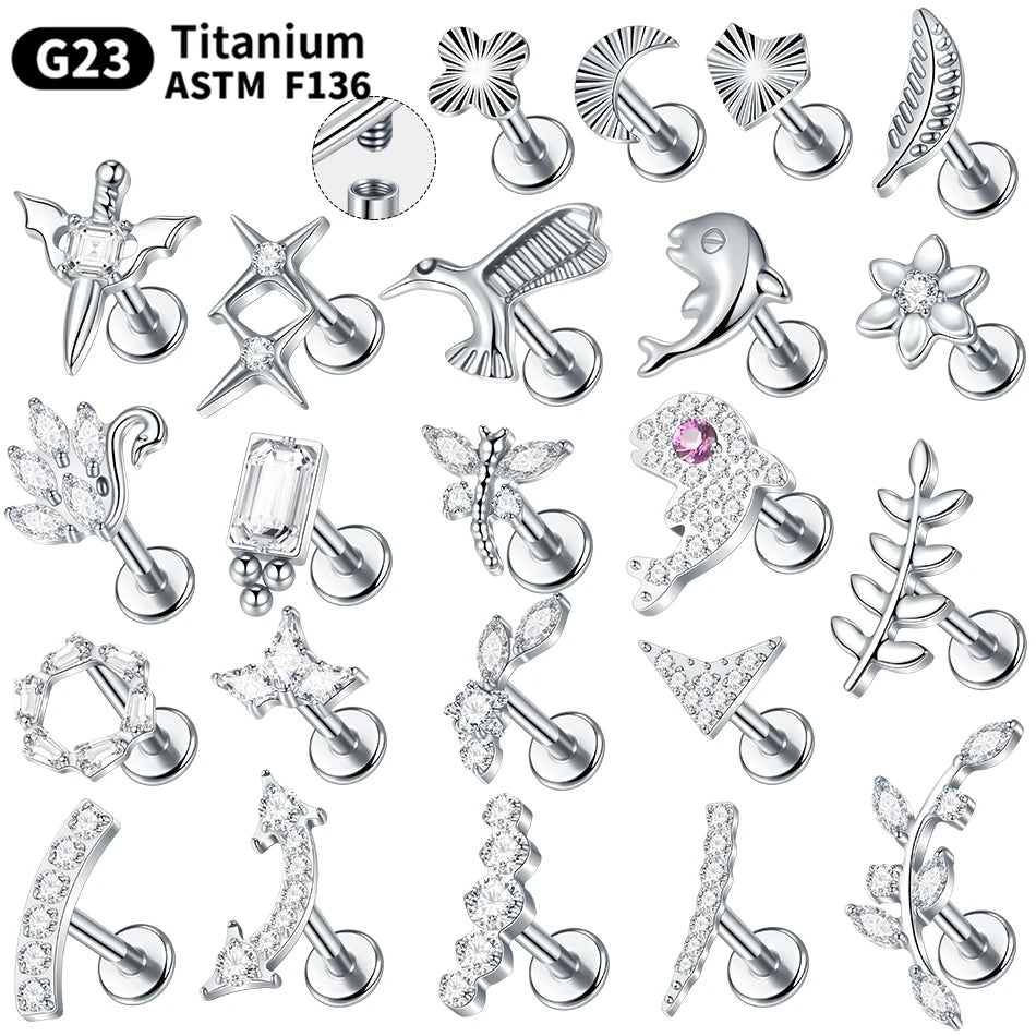 Titanium 16G Ear Cartilage Piercing Marquise CZ Flower Helix Conch Flat Back Rook Tragus Labret Lip Piercings Body Jewelry