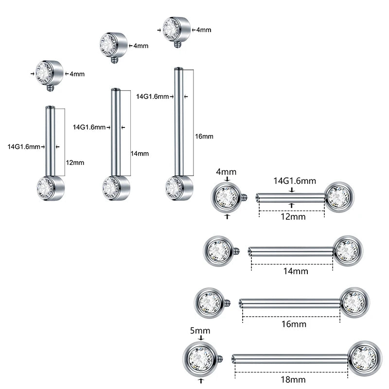 Material: Metal, ASTM F136 Titanium & CZ Crystal