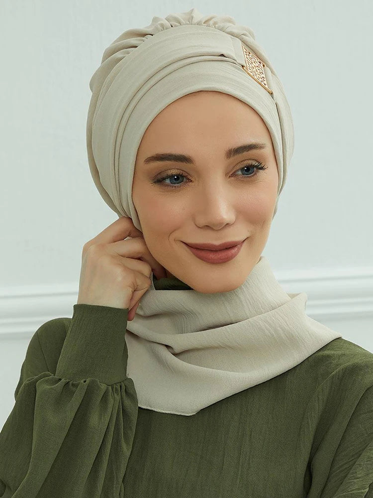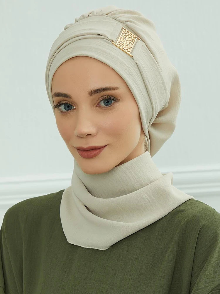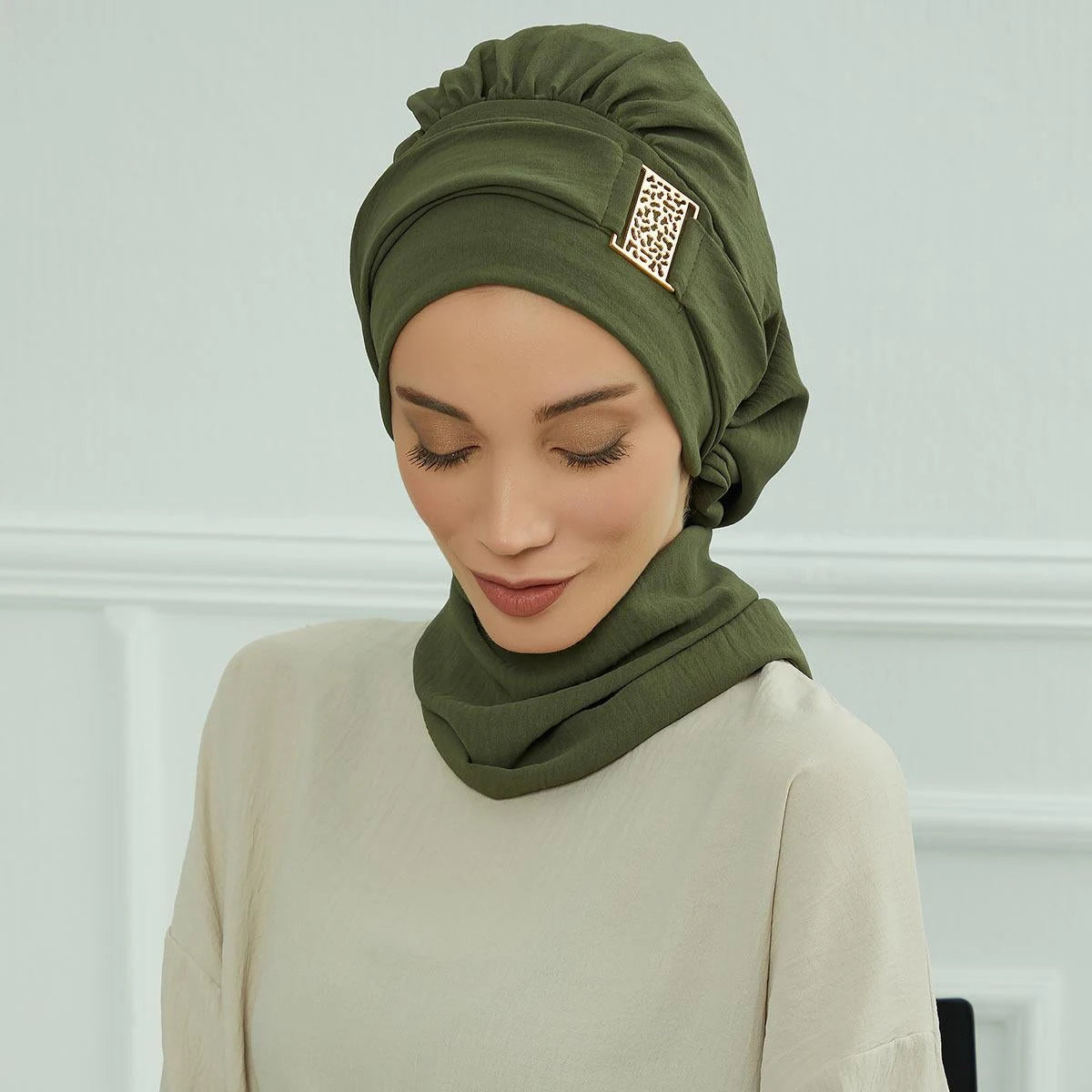 Elegant Plain Muslim Instant Turban Hijab Women Headband for Ladies,Metal Buckle Design