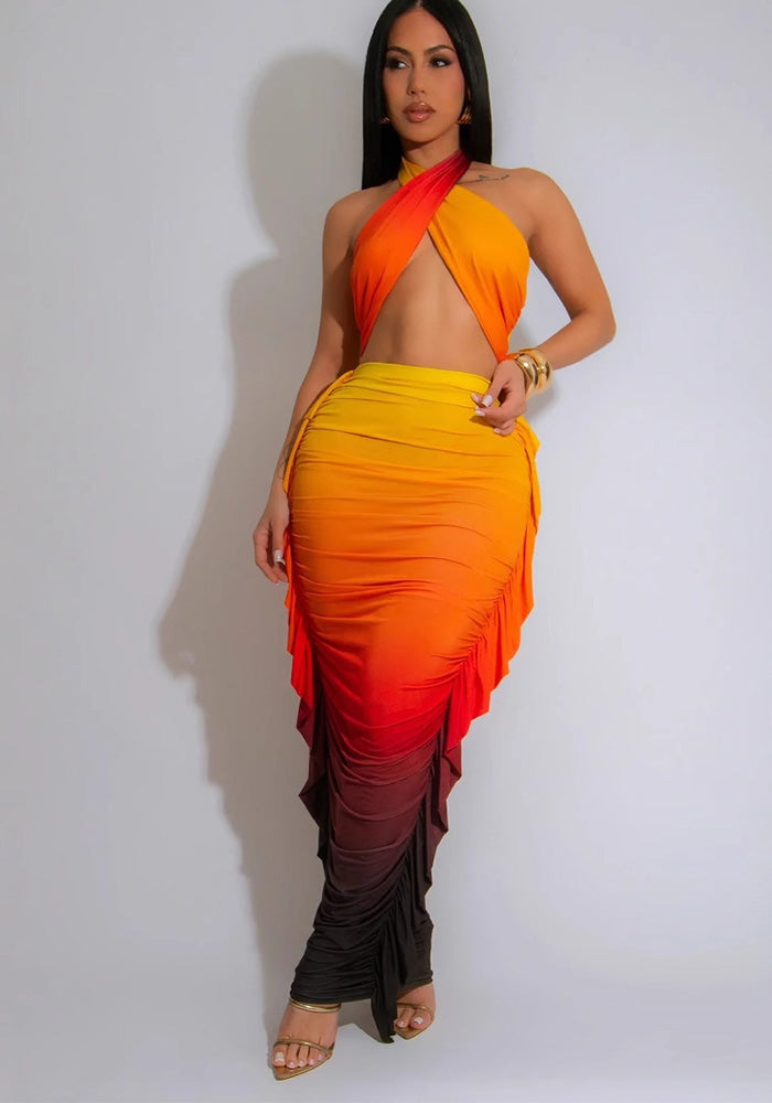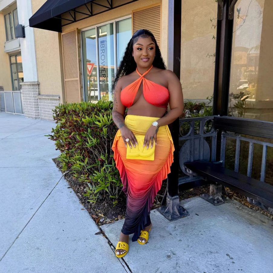 This Women Gradient Print Crop Pleated Top And Skirt Two Piece Set Design Made Of High Quality Polyester And Spandex Material. It Is Stretchy, Durable And Comfortable. It Come With The Top And Skirt Matching Set. Women’s Skirt Suit Sets Is a Great Alternative To One Piece Outfit. It Can Either Be Worn Together Or Individually, So You Can Combine Them Endlessly.