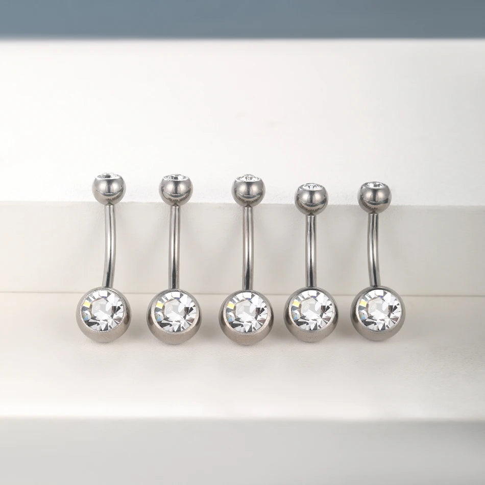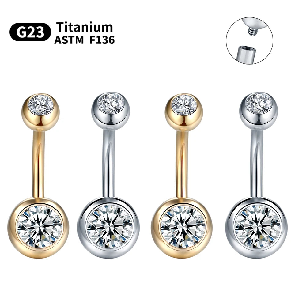 G23 Titanium 14G Gold Color Belly Button Rings Navel Nombril Piercing CZ Gem 6/8/10/12mm Bar Belly Piercing Sexy Jewelry
