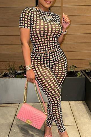Black Sexy Print See-Through O Neck Short Sleeve Two Pieces