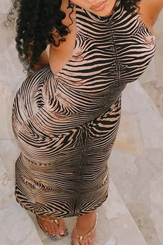 Black Sexy Zebra Print Backless O Neck Long Dresses