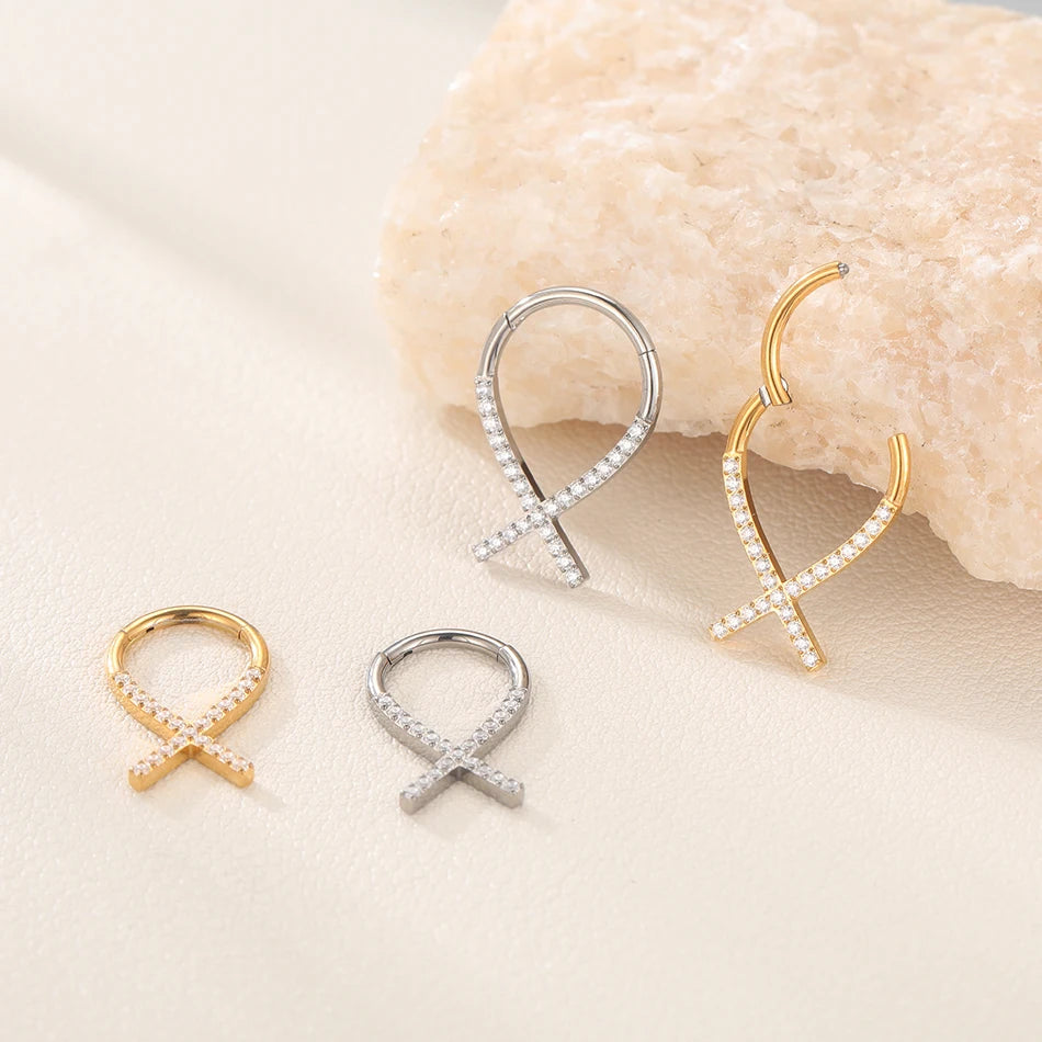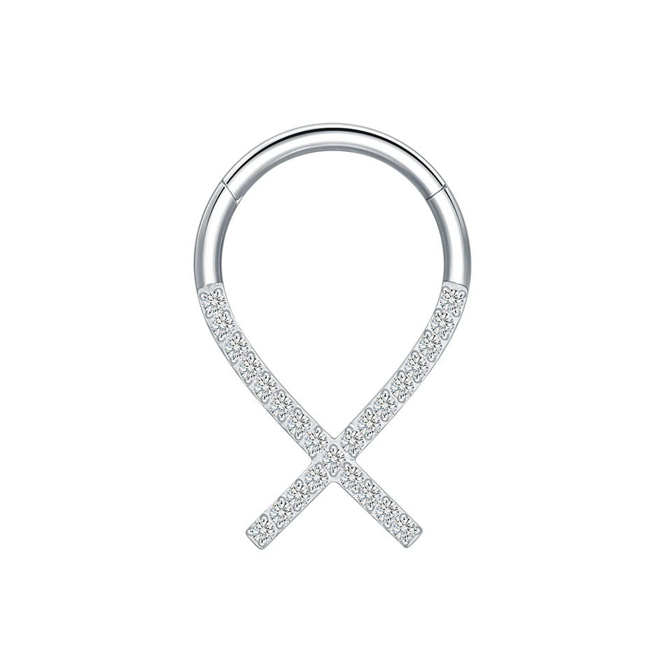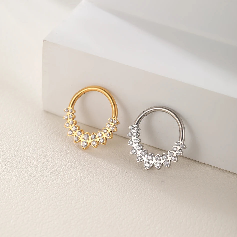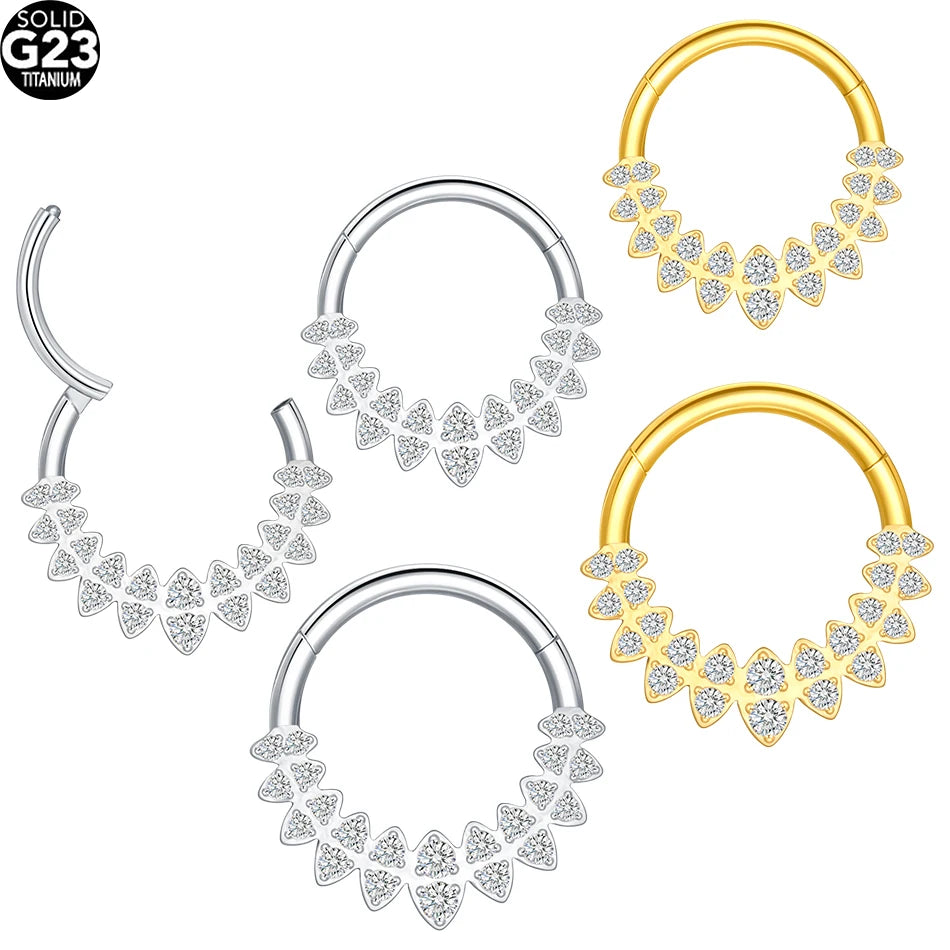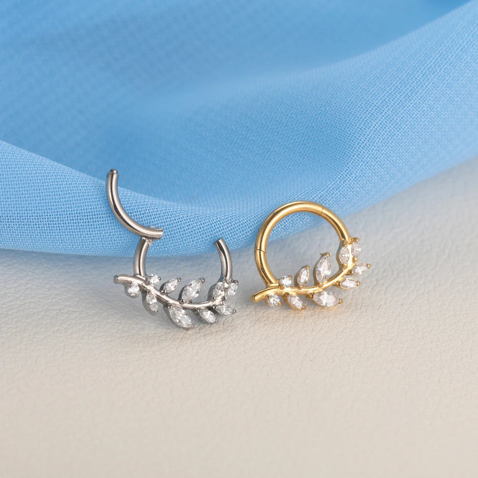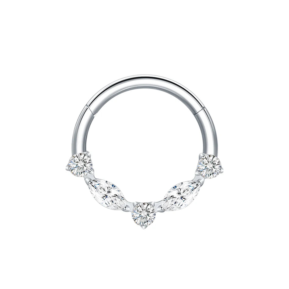 Marquise CZ Hinged Segment Piercing Titanium Septum Clicker Nose Hoop Ring Tragus Upper Lobe Piercing Cartilage Earring