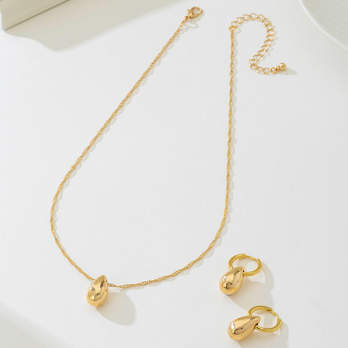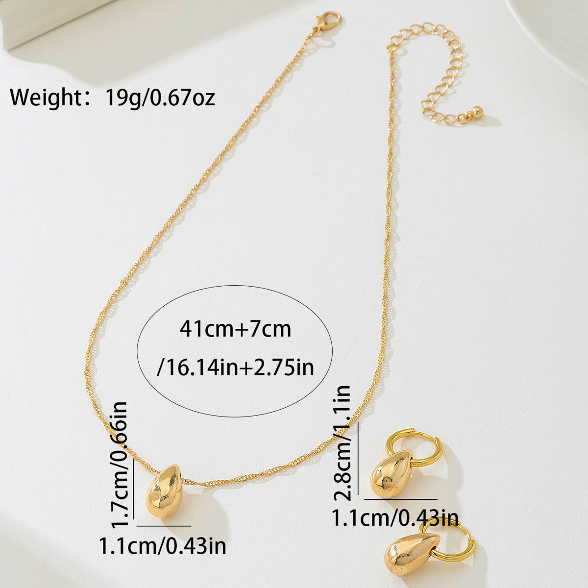 Gold Pendant Necklace And Circle Drop Earrings Set For Women