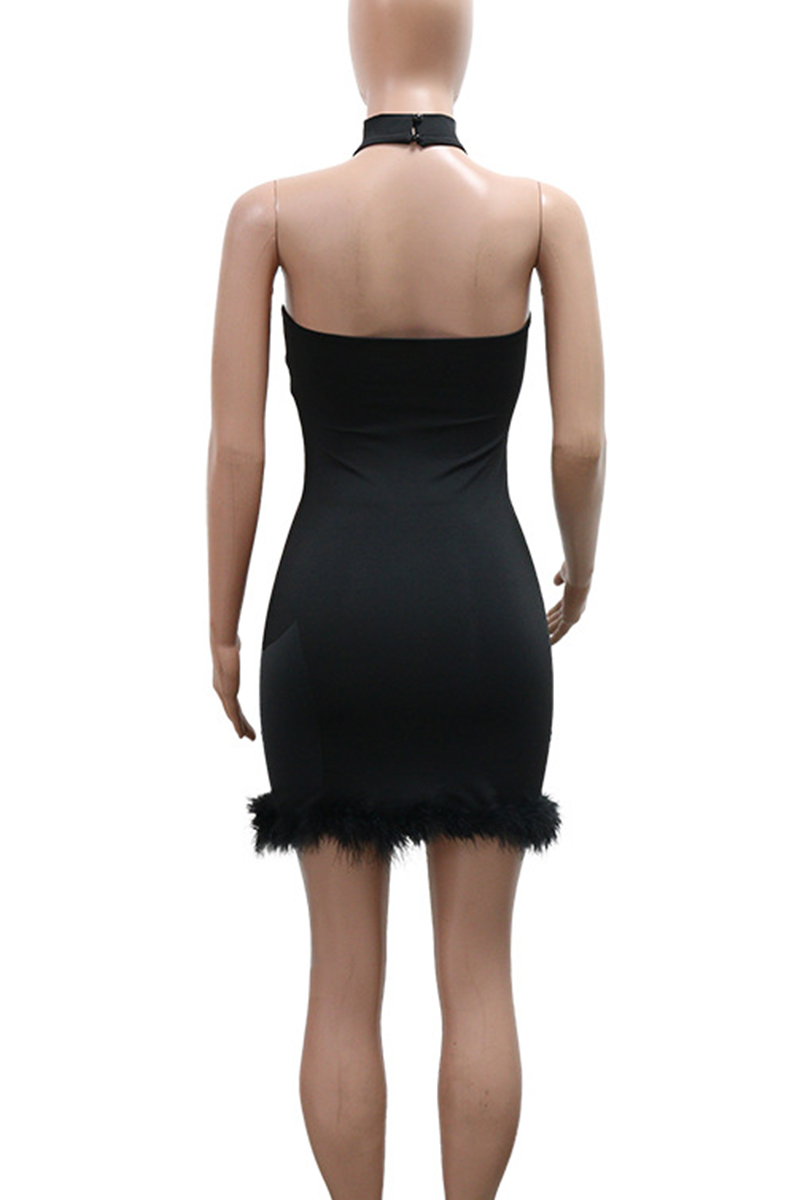 Black Sexy Flowers Backless Hot Drill O Neck Wrapped Skirt Dresses