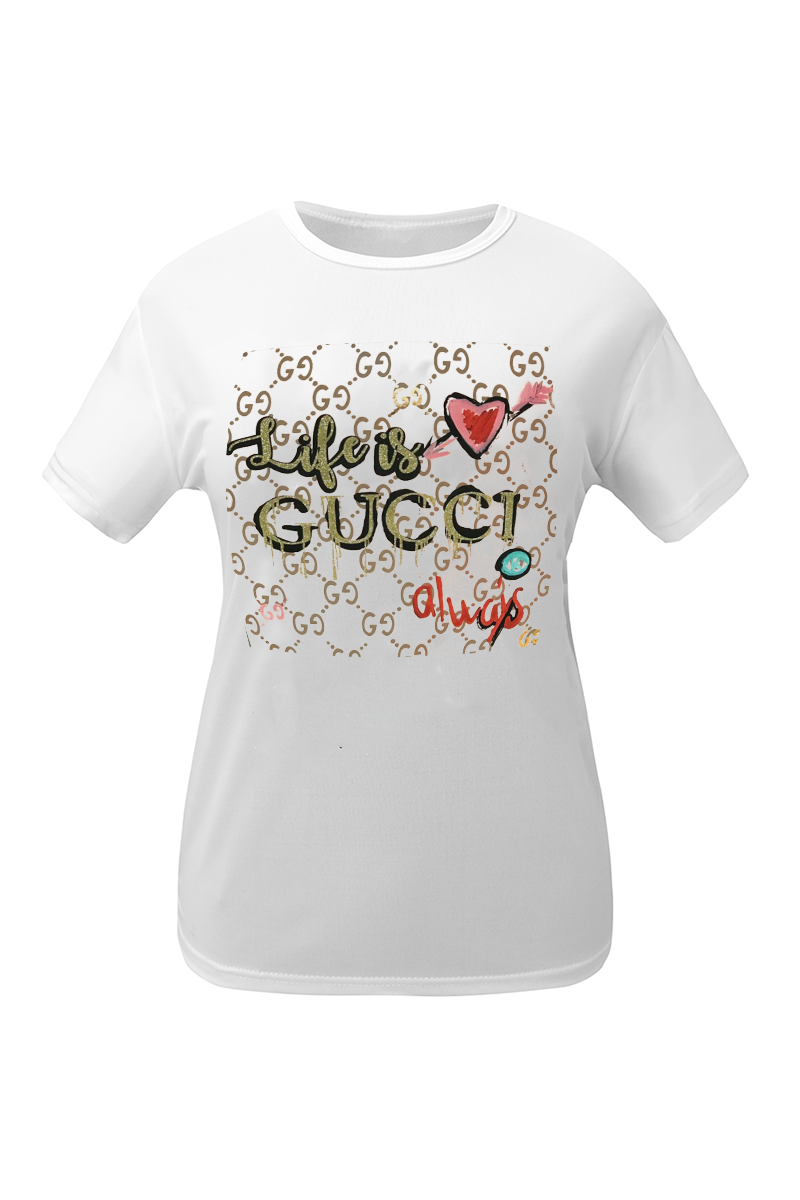 Black Fashion Casual Print Patchwork Letter O Neck T-Shirts
