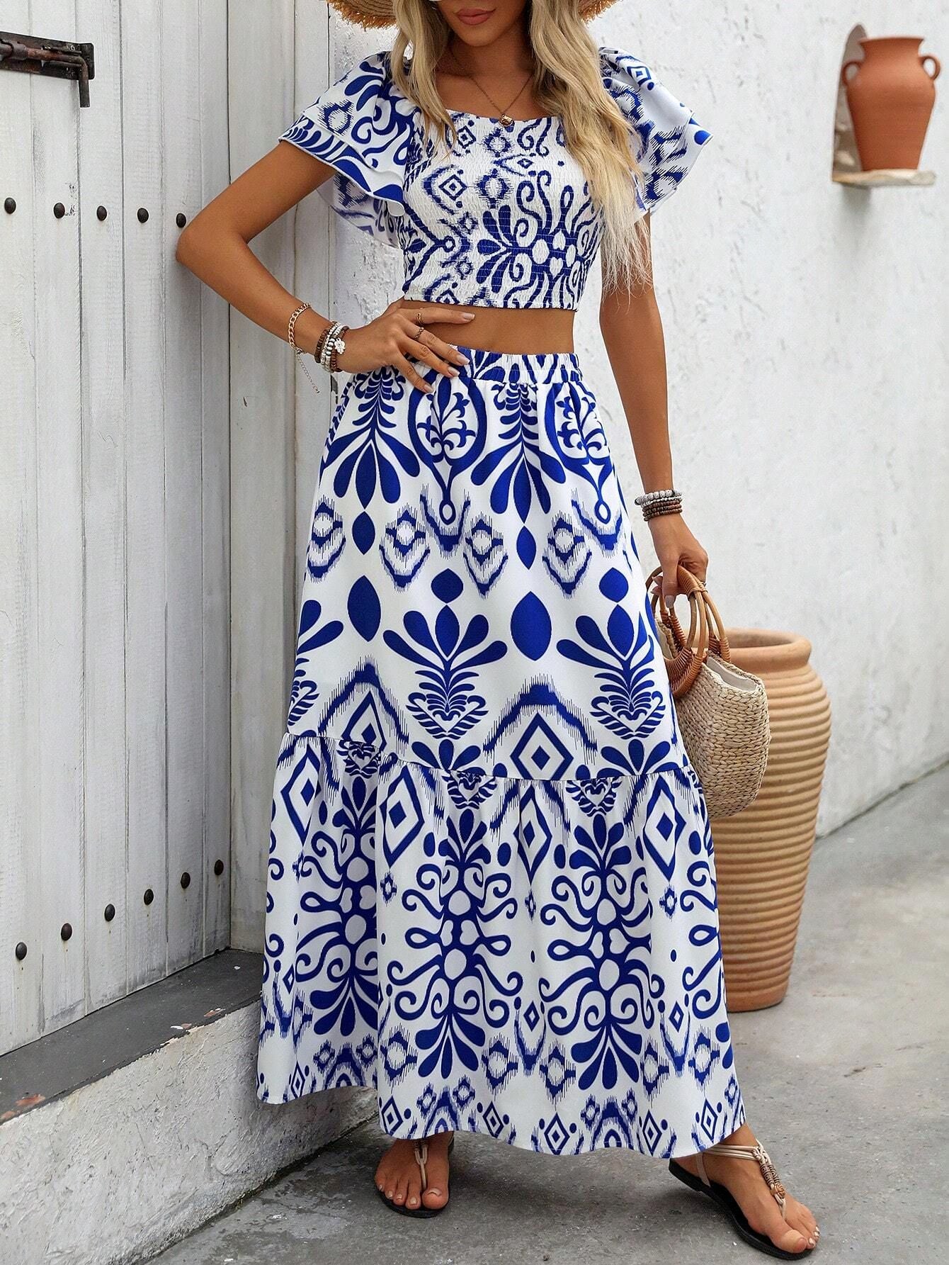 This Women's Casual Print Dress Two-Piece Skirt Set Design Made Of High Quality Polyester And Spandex Material. It Is Stretchy, Durable And Comfortable. It Come With The Top And Skirt Matching Set. Women’s Skirt Suit Sets Is a Great Alternative To One Piece Outfit. It Can Either Be Worn Together Or Individually, So You Can Combine Them Endlessly.