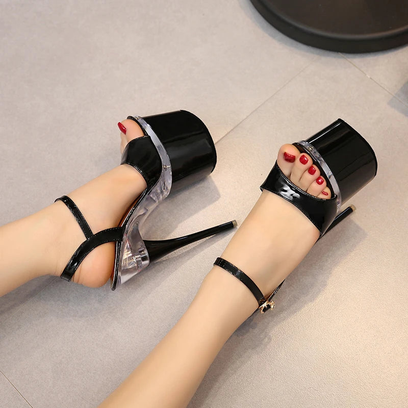 Steel Tube Dancing Shoes Women 2020 Summer New High Heel Peep Toe Sandals Heel 18cm Thick the Bottom Waterproof 5- 8.5cm Nigh