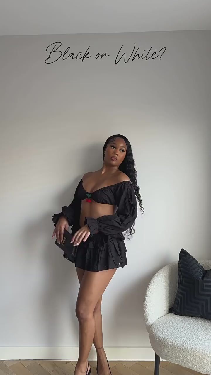 Cherry Hollow-out Off Shoulder Cropped Skirt Sets