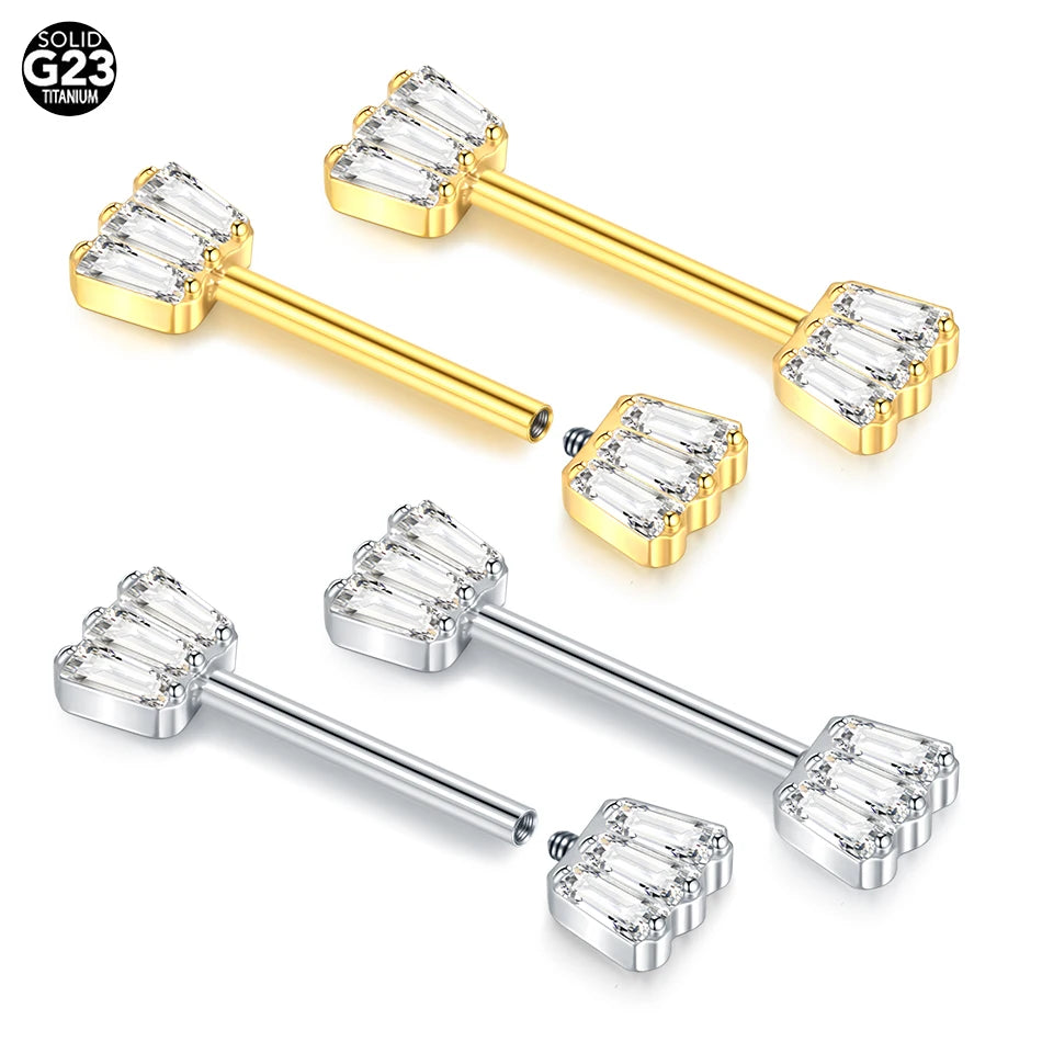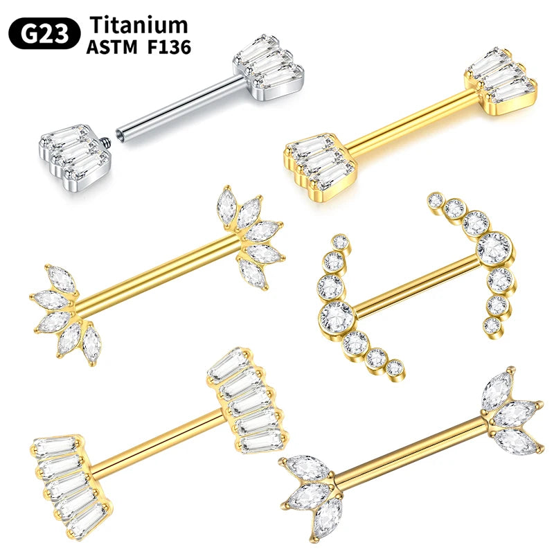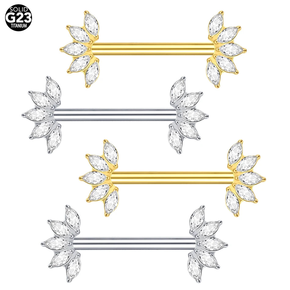 1PC Gold Color Nipple Piercings for Breasts CZ Flower Nipple Ring Sets 14G Titanium Nipple Shield Barbell Nipple Bars for Women