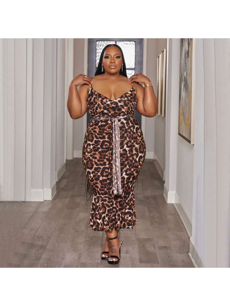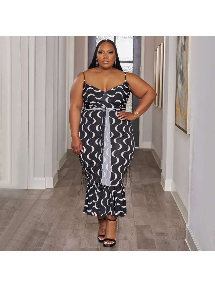 Print Lace Up Spaghetti Straps Mermaid Midi Dresses