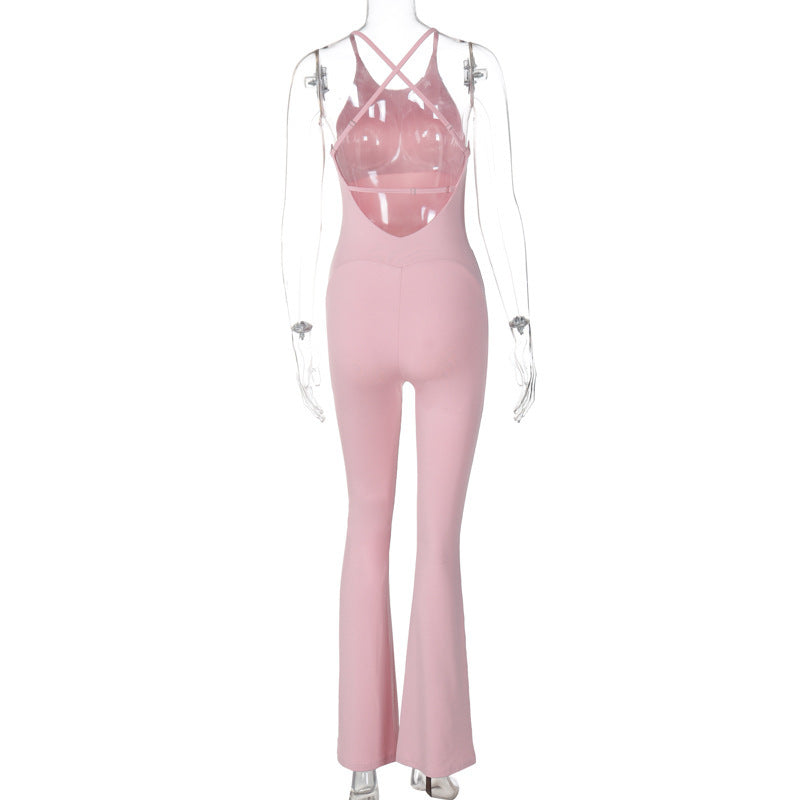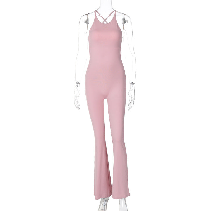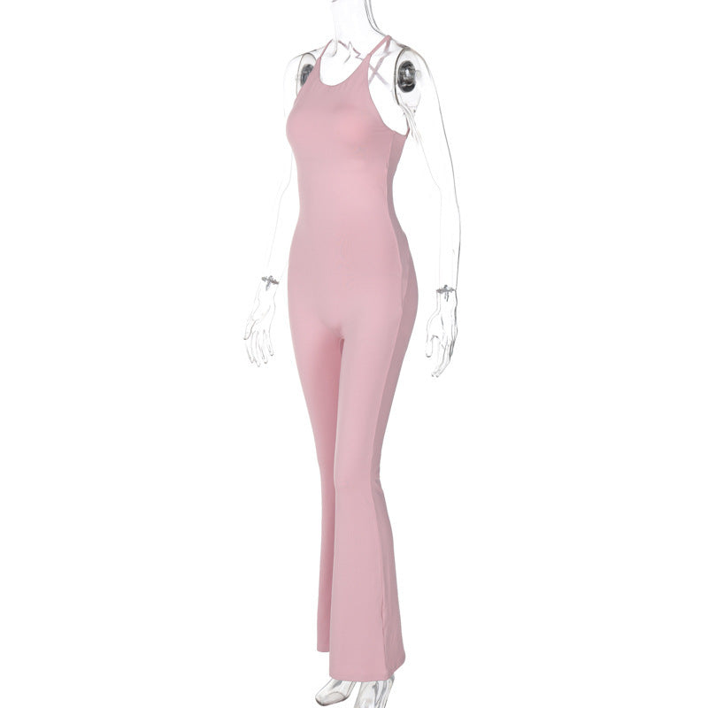 Sexy Cross Tank Fitness Yoga Jumpsuit Plus Size High Stretch Slim Fit Boot-Type Jumpsuit