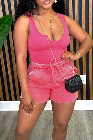 Black Casual Solid Color Draw String V Neck Sleeveless Two Pieces