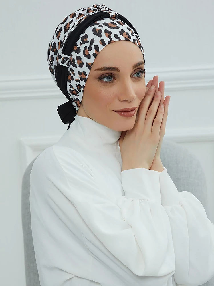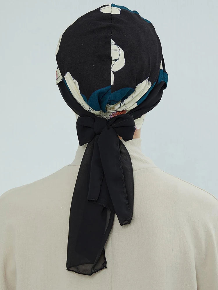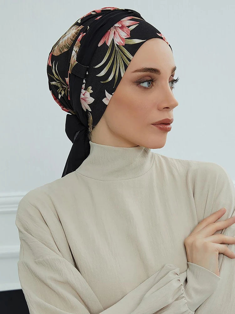 Muslim Instant Turban Woman Hijab Cap Floral Pattern, Strap Design, Adjustable Elasticity