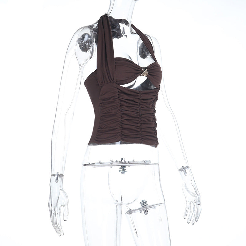 This Women Autumn Ruched Metal Ring Halter Neck Strap Top Is Soft And Comfortable. This Camisole Tank Top Is a Must-Have Item For Your Closet, It Can Be Worn Inside In Autumn/Spring And Matching a Perfect Jacket Or Blazer, But Also Can Be Worn Individually For a Seaside Trip In Summer.
