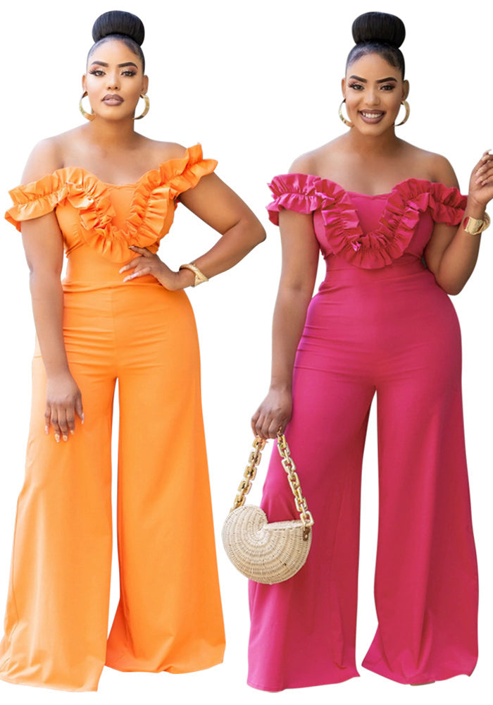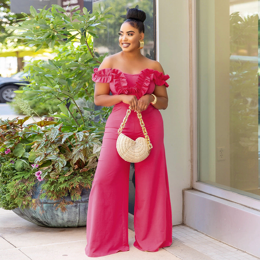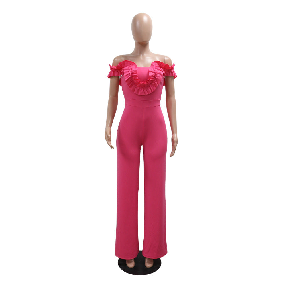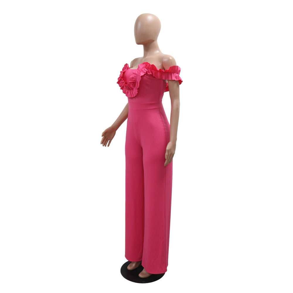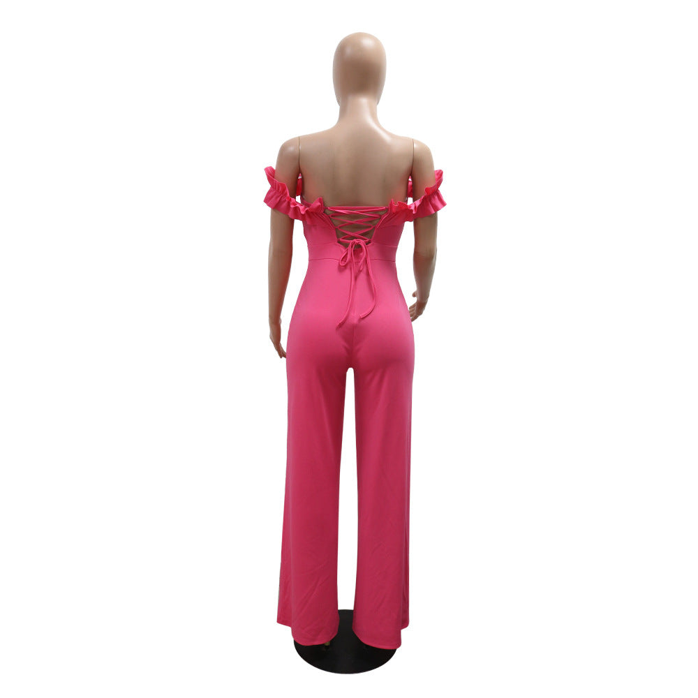 Women Off Shoulder Ruffle Solid Jumpsuit