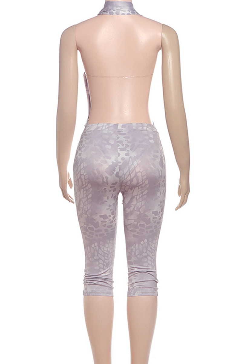 Purple Sexy Print Backless Deep V Neck Sleeveless Two Pieces