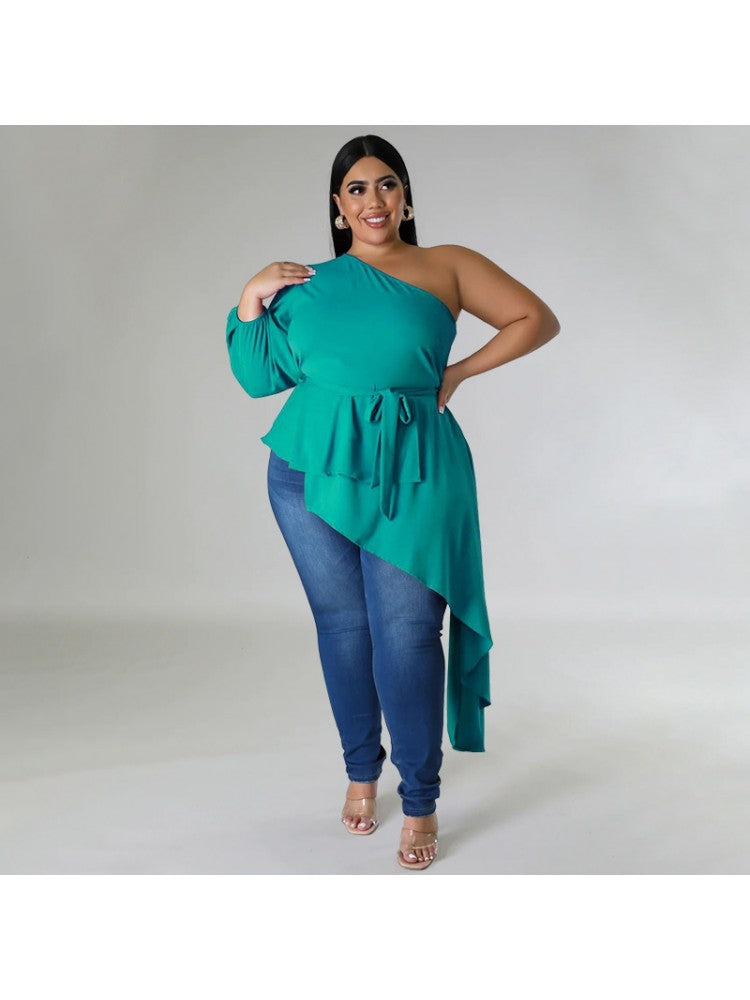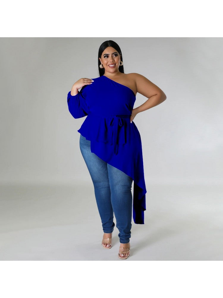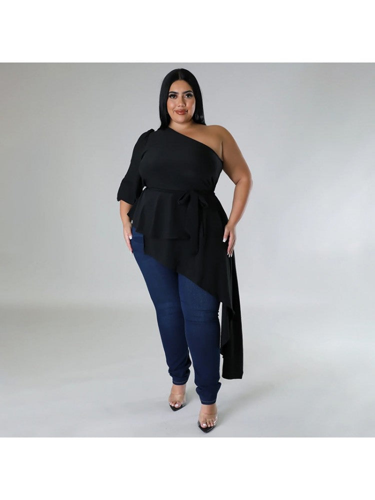 Women's Sexy Knitting Irregular Ruffled Solid Top