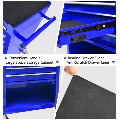 4 DRAWERS MULTIFUNCTIONAL TOOL CART WITH WHEELS-BLUE