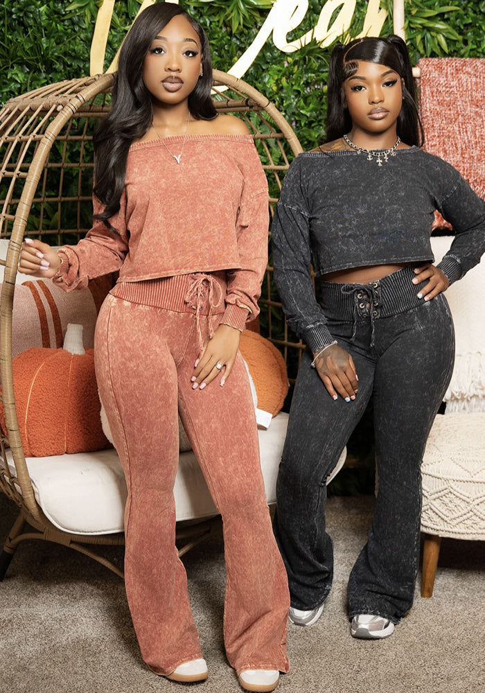 Women Printed Loose Casual Top and Wide Leg Pants Two-piece Set