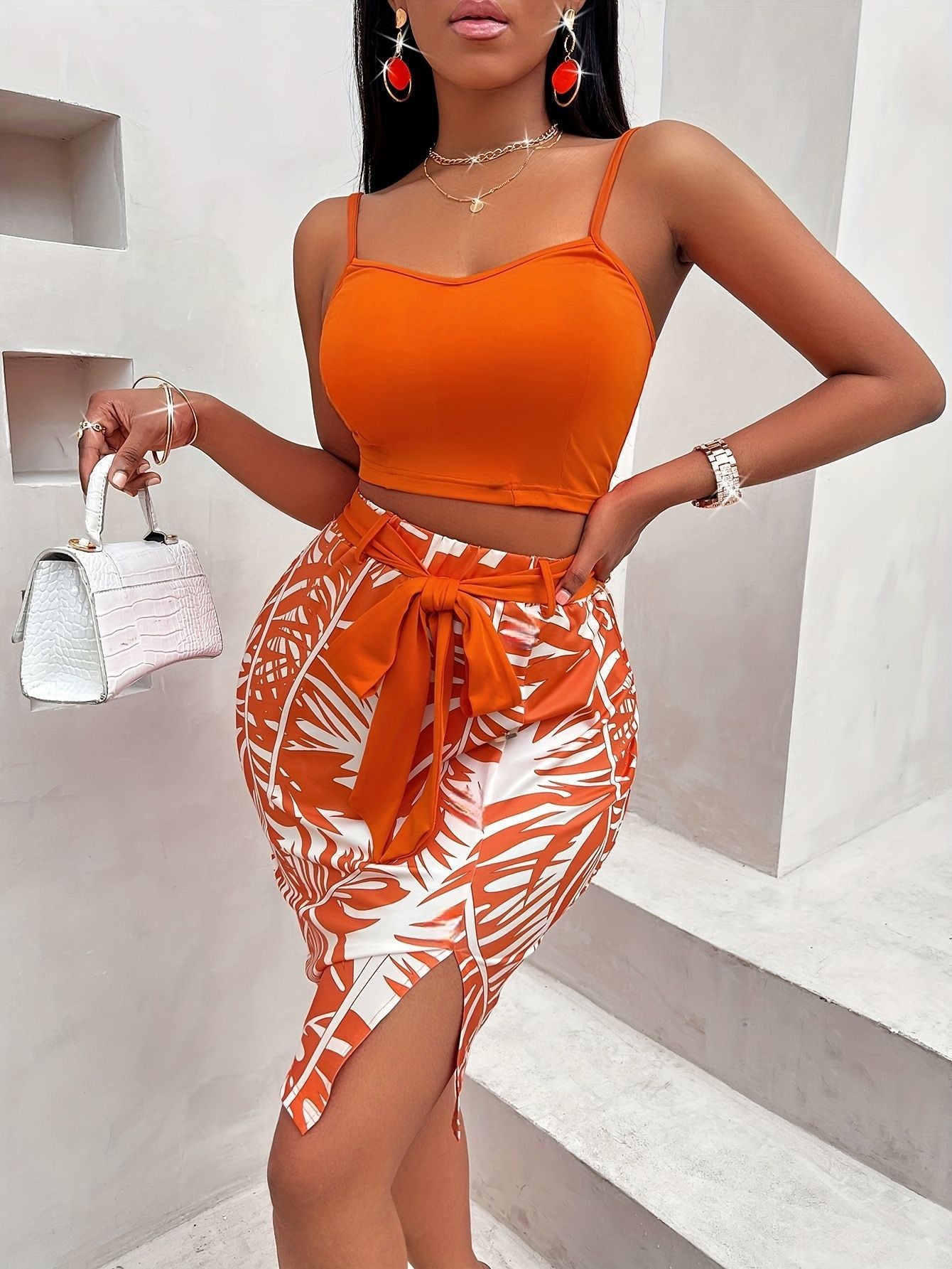 Women Summer Suspender Top And Tie-Dye Skirt Two-piece Set