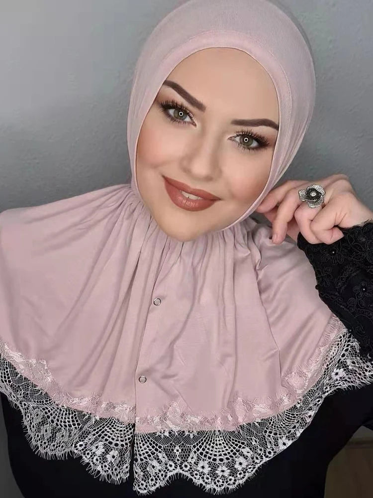 Muslim Instant Turban Lace Modal Hijab Abaya Hijabs For Woman Abayas Jersey Dress Women Scarf Turbans Head Islamic Crinkle Shawl